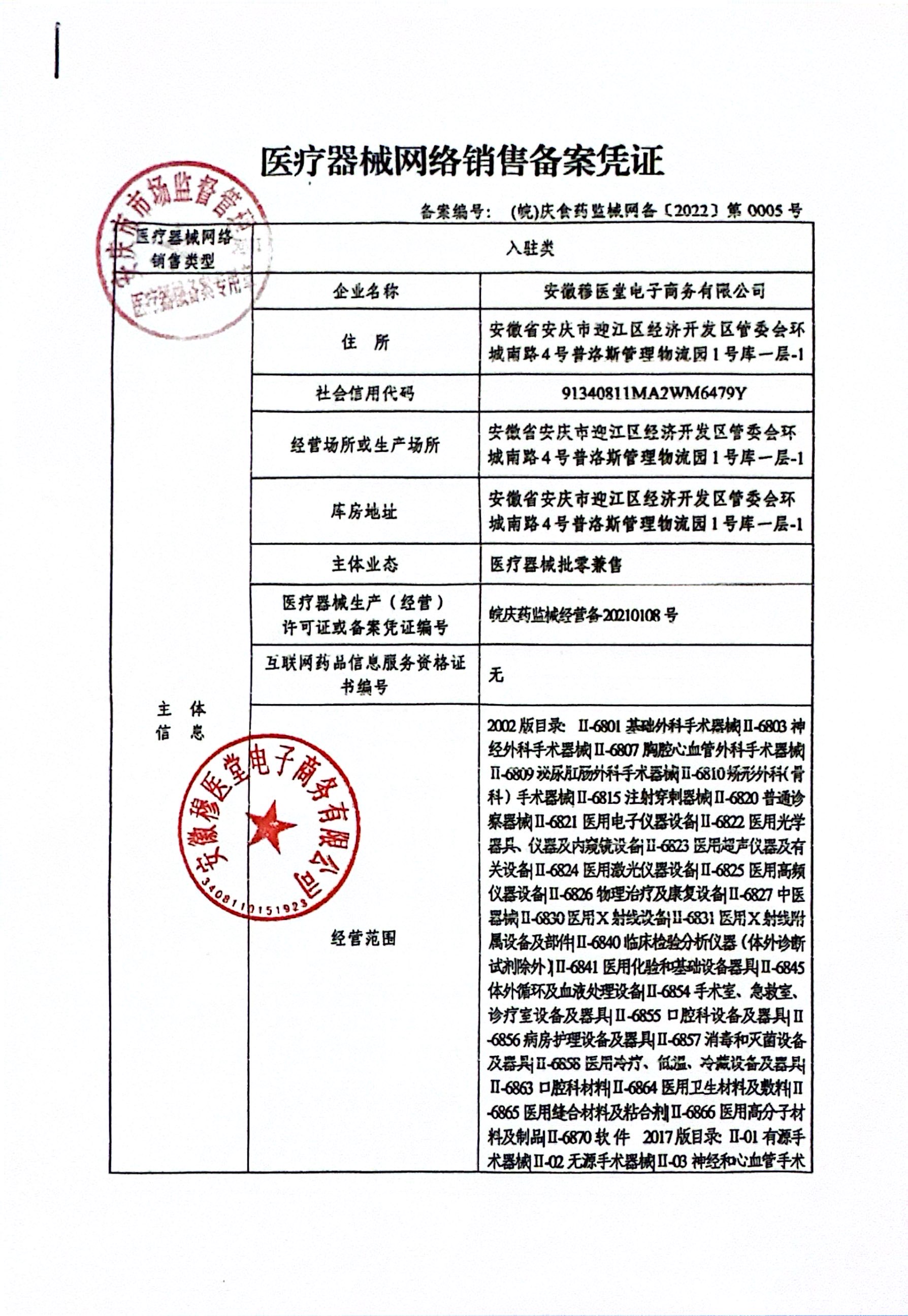 公司以授權(quán)品牌“穆一堂”,已經(jīng)在淘寶、京東、拼多多、百度健康商城、快手、美團(tuán)等多個(gè)主流電商平臺開通店鋪,公司運(yùn)營資質(zhì)產(chǎn)全,獲得了:醫(yī)療器械經(jīng)營備案憑證、醫(yī)療器械網(wǎng)絡(luò)經(jīng)營備案、食品經(jīng)營許可證、互聯(lián)網(wǎng)醫(yī)療器械信息服務(wù)資格證、商標(biāo)授權(quán)等資質(zhì)。經(jīng)營品類涵蓋了前列腺系列醫(yī)療器械,如凝膠、栓劑、膏貼等,還新推出了男科、婦科健康產(chǎn)品,以多品類產(chǎn)業(yè)格局,構(gòu)建此類用戶一站式健康服務(wù)業(yè)體系。